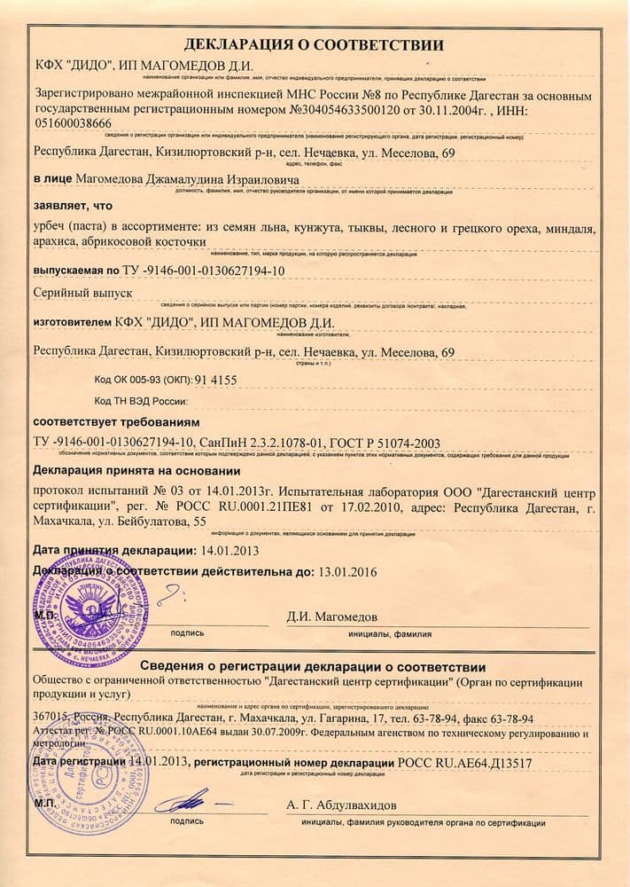 | Регион производителя | Дагестан | |